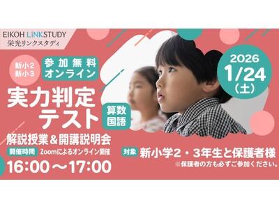 【栄光リンクスタディ】新小学2・3年生対象、実力判定テスト&オンライン解説授業