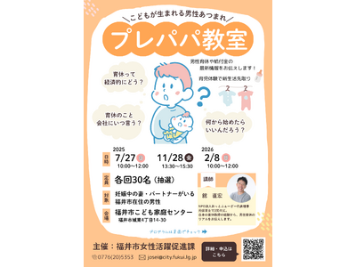 【福井県福井市】\こどもが生まれる男性あつまれ/"プレパパ教室″はじめました!