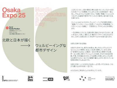 2025年大阪・関西万博にて「Nordic Architecture & Design Day」内のセッション「Wellbeing as Belonging」を共同企画・登壇します
