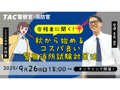 【TAC警察官・消防官(消防士)】「合格者に聞く!秋から始めるコスパの良い警察消防試験対策法」を9/26(金)配信スタート!