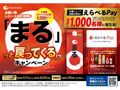~11月1日から12月31日までWebで実施~ 白鶴酒造株式会社は、「お買い物レシート合計金額が『まる』っと戻って来る!?キャンペーン」を2025年11月1日(土)から12月31日(水)まで実...