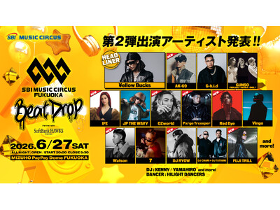 【福岡】オールナイト音楽フェス「SBI MUSIC CIRCUS FUKUOKA -Beat Drop- partner with SoftBank HAWKS」第二弾アーティスト発表のお知らせ