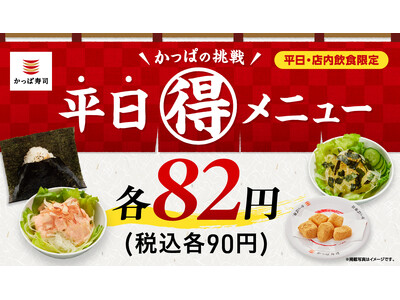 人気メニューが週替わりで、税込各90円!平日限定!2026年5月7日(木)~6月10日(水)、かっぱ寿司全店で実施! コロワイドグループのかっぱ寿司(カッパクリエイト(株)本社:神奈川県横浜市...