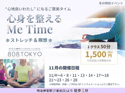 【 冬のストレッチ&瞑想イベント開催 】 "心地良いわたし"になるご褒美タイム~ 心身を整えるMe Time ~|表参道のダイエット専門ジム"808TOKYO"
