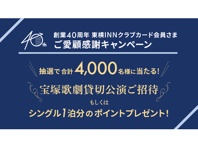 東横INNクラブカード会員さま限定「創業40周年 ご愛顧感謝キャンペーン」(第1弾)のお知らせ