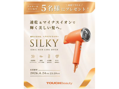 TOUCHBeauty株式会社は、公式Instagramアカウントにて、ヘアケアドライヤー「SILKY イオンドライヤー」が抽選で5名様に当たるプレゼントキャンペーンを開始します。 対象商品は...