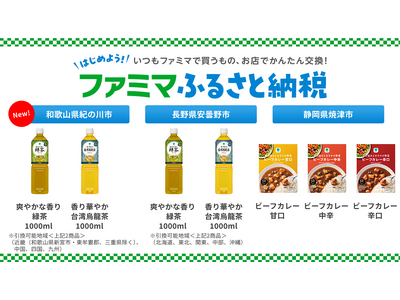 「ファミマふるさと納税」にレトルトカレーが新登場!人気のファミマルお茶1000mlのラインアップが拡大!~ファミペイ回数券でお礼品を受取&すぐに・いつでも交換OK~