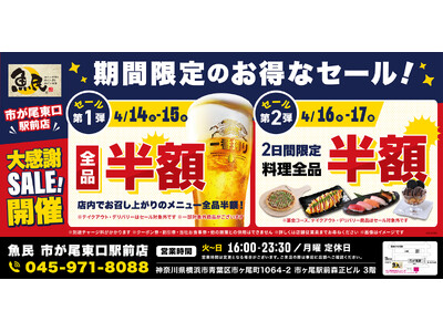 【お得な4日間!】神奈川県横浜市の「魚民 市が尾東口駅前店」で、4日間限定"半額"セールを実施!