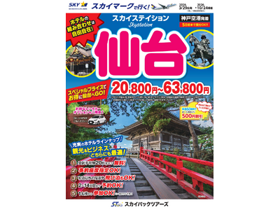 【新商品/神戸空港発着】スカイマーク利用「スカイステイション 仙台」を販売開始!価格は20,800円から♪スカイマーク公式ダイナミックパッケージ『たす旅』では早割タイムセール実施中!8月~10月がお得