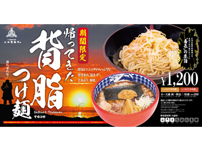 【三田製麺所】約2年ぶり待望の復活!背脂とニンニクが食欲を刺激する『帰ってきた 背脂つけ麺』期間限定販売