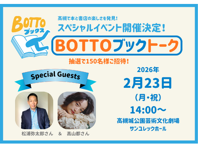 文筆家の松浦弥太郎さん、モデルでエッセイストの高山都さんをゲストに迎え、本や書店の魅力を大いに語るイベント「BOTTOブックトーク」が令和8年2月23日(月曜日祝日)に高槻城公園芸術文化劇場 ...