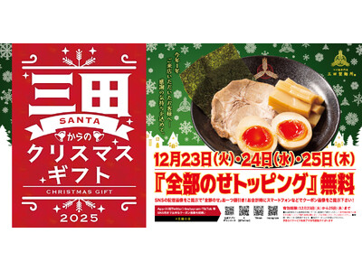 期間中は、通常410円の『全部のせトッピング』を無料で提供いたします。※クリスマス期間:2025年12月23日(火)~25日(木) 株式会社エムピーキッチンホールディングス(本社:東京都渋谷区...