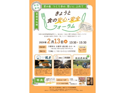 ~きょうと食の安心安全フォーラム"京の食 つくり手の想いにふれて"~ 京都府では、府内の食品関連事業者と消費者との交流による「食の信頼づくり」を推進するため、きょうと食の安心安全フォーラムを2...