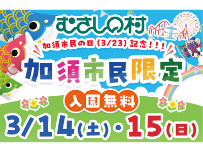 【遊園地むさしの村】3月23日は加須市民の日!!「加須市民限定入園無料」2026年3月14日(土)・15日(日)開催!