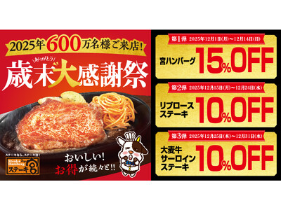 2025年12月1日(月)よりチラシに付いたご優待券または公式HP該当ページを提示で適用 コロワイドグループの株式会社アトム(本社:神奈川県横浜市、代表取締役社長:植田剛史)が展開するステーキ...