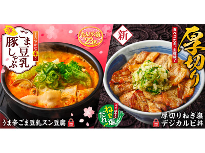 【韓丼】春にWの新商品が登場!厚切りねぎ塩デジカルビ丼&豚しゃぶごま豆乳スン豆腐を3月17日より販売開始