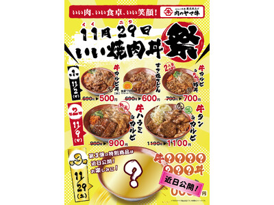 おいしいお肉を、日頃の感謝とともに!肉のヤマ牛流!切り立て・焼き立ての流儀を楽しむ秋の3日間11月は"11(いい)やき29(にく)丼祭り" を開催