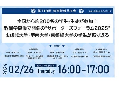 教育業界の取り組みを共有!第118回教育情報共有会「全国から約200名の学生・生徒が参加!教職学協働で開催の"サポーターズフォーラム2025"を成城大学・甲南大学・京都橘大学の学生が振り返る」