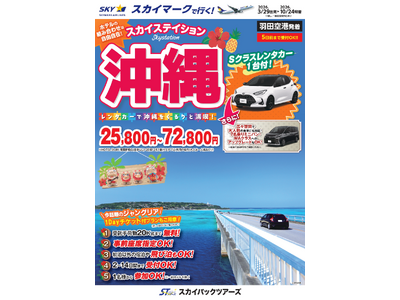 【新商品/羽田空港発着】スカイマークで行く!「スカイステイション レンタカー付沖縄」を販売開始!価格は25,800円から♪スカイマーク公式ダイナミックパッケージ『たす旅』ではクーポンセール 実施中