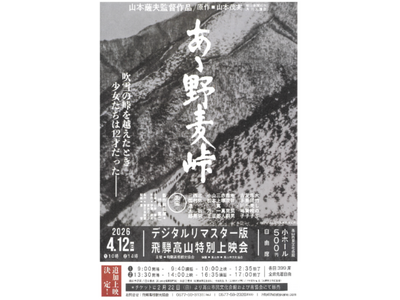 【飛騨高山・岐阜県高山市】「あゝ野麦峠」デジタルリマスター版 飛騨高山特別上映会 ≪同時開催≫ 沖野 清「野麦峠を越えた女工たち」展 開催