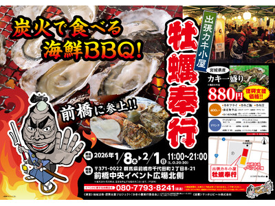 群馬県前橋中央イベント広場に「出張カキ小屋」参上! 1月8日~期間限定開催!《 宮城県産殻付き牡蠣が一盛り880円!! 》