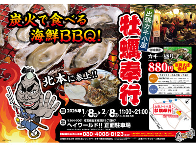 埼玉県ヘイワールド!!北本に「出張カキ小屋」参上! 1月8日~期間限定開催!《 宮城県産殻付き牡蠣が一盛り880円!! 》