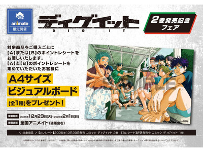 2巻の詳細はこちら! 株式会社アニメイトは、『ディグイット』の最新2巻を2025年12月23日に発売いたします。 発売を記念して、全国アニメイトアニメイト通販では12月23日~2026年2月1...