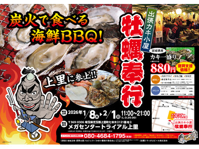 埼玉県メガセンタートライアル上里に「出張カキ小屋」参上! 1月8日~期間限定開催!《 宮城県産殻付き牡蠣が一盛り880円!! 》