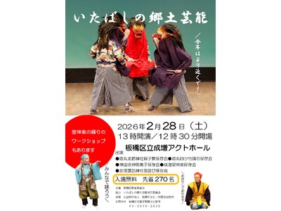 令和8年2月28日(土)、区立成増アクトホールで郷土芸能の公開イベント「いたばしの郷土芸能」を開催します。特設舞台でより間近に郷土芸能に触れることができます。 板橋区内には数多くの郷土芸能(無...