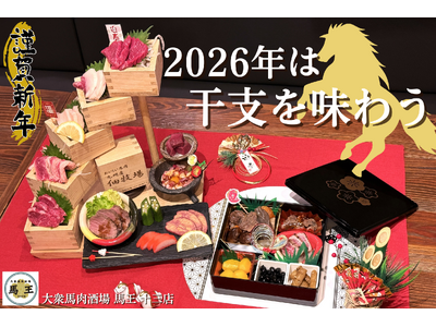 ~階段盛りの馬刺し7種&縁起物の副菜で、2026年の幕開けを華やかに!~ 大阪十三の「大衆馬肉酒場 馬王 十三店」では、2026年の午(うま)年の始まりを祝し、縁起の良い"馬肉"を主役...