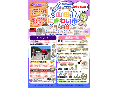 まちなか及び地域経済の活性化を図る 岩手県山田町(町長:佐藤 信逸)は、「山田にぎわい市」を2026年2月8日に開催します。今回は、旬のカキをカンカン焼きで楽しめます。また、地元農産物、水産加...