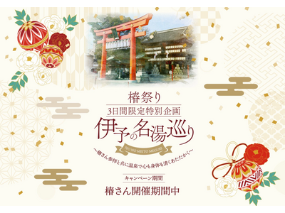 松山砥部の温泉3施設が連携、椿さん参拝とともに温泉で福を招く 2026年2月23日(月祝)から25日(水)までの3日間、南道後温泉ていれぎの湯/SPA PSPO湯砥里館とべ温泉/南道後温泉ホテ...