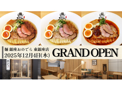 「麺 銀座おのでら」待望の銀座エリアに2号店が登場「麺 銀座おのでら 東銀座店」12月4日(木)グランドオープン!