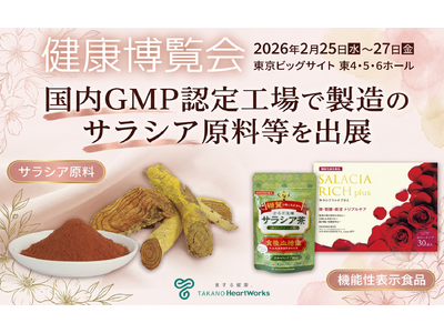 国内GMP認定工場で製造のサラシア原料をアピール 健康博覧会2026に出展 タカノ株式会社(本社:長野県上伊那郡宮田村、代表取締役社長:鷹野 雅央)は、2026年2月25日(水)~27日(金)...