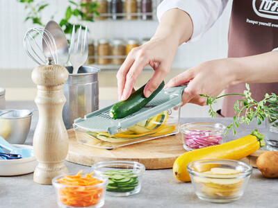 くるっと裏返すだけ!薄切り・細切り・薬味おろしができる、両面仕様の1台3役「Toffy 両面ハンディスライサー」発売