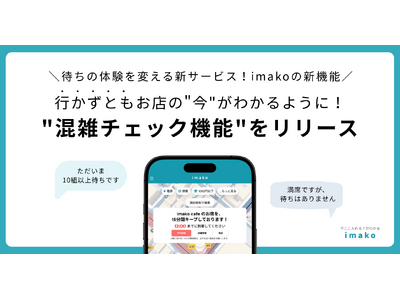 ~直前席キープリクエストを送るだけで「お店の今」がわかる!~ imako直前席キープの新機能「混雑チェック機能」をリリース 株式会社imako(本社:東京都渋谷区、代表取締役:浜田真衣)が運営...