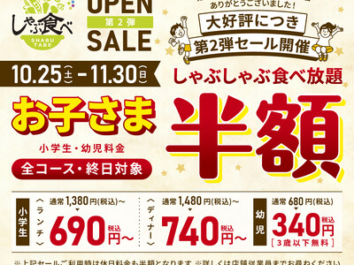 【お子様料金半額!】「しゃぶ食べ錦糸町南口駅前店」において、OPEN記念セール【第2弾】しゃぶしゃぶ食べ放題『お子様料金半額セール』を開催!