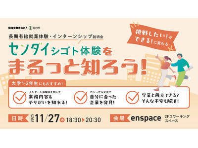 【長期有給就業体験に挑戦したい学生へ】「センダイシゴト体験をまるっと知ろう!-長期有給就業体験・インターンシップ説明会-」を11/27(木)に開催します!