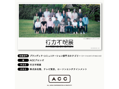 『行方不明展』、国内最大級のアワード「ACC TOKYO CREATIVITY AWARDS」にてACCブロンズを受賞