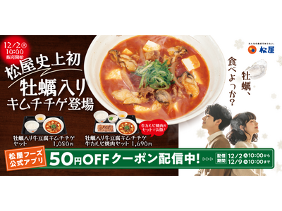 【松屋】あの大人気メニューがパワーアップ「牡蠣入り牛豆腐キムチチゲ」 発売