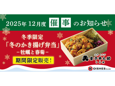 テイクアウト専門「日本橋 天丼 天むす 金子半之助」。「冬のかき揚げ弁当」を期間限定で販売 人気飲食店のつけ麺「つじ田」や、「中華そば専門 田中そば店」などをグループで運営する、オイシーズ株式...