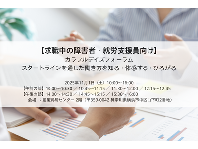 11/1(土) 産業貿易センターにて開催 障害者就業支援を通じて"誰もが自分らしく生きる社会"を目指す株式会社スタートライン (本社:東京都三鷹市、代表取締役:西村賢治)は、2025年11月1...