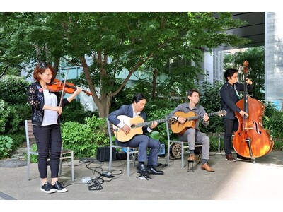本場フランスでも演奏した日本のジプシージャズの第一人者、ギタリスト山本大暉さん率いるバンドがライブ開催 前回開催された六本木天祖神社でのライブの様子。左から2番目がギタリストの山本大暉さん パ...