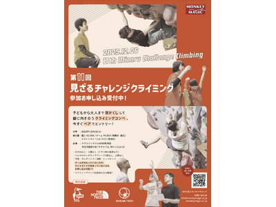障害者クライミング普及活動を20年にわたり行うNPO法人モンキーマジックは、全員がアイマスクを着用して挑戦するクライミングコンペ「見ざるチャレンジクライミング」を12月6日(土)に開催します。...