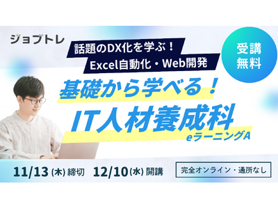 【Excel自動化 × Webアプリ開発】プログラミングが学べる求職者支援訓練「基礎から学べる!IT人材養成科(eラーニングA)」12/10開講!受講生募集開始