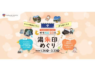 2026年1月26日(月)~3月23日(月)まで、サウナ銭湯温泉スーパー銭湯など市内15の温浴施設を巡る「サウNA GO!! 湯朱印めぐり ~サウナの聖地なごやでまちめぐり!~」を開催! 公益...