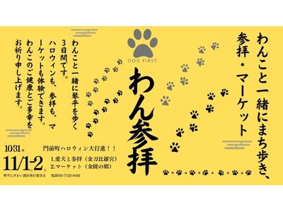 モニターツアーから、ハロウィン、わんこ参拝、わんこマーケットまでまもなく開催!! わんこと一緒にこんぴらさん、門前町を散策してもらいます! 江戸期の逸話を現代へ犬と参拝できる唯一の文化的聖地か...