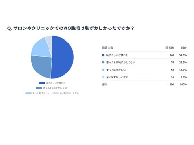 290人女性のVIO脱毛の恥ずかしさと満足度調査