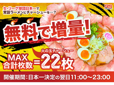 セリーグ球団が日本一奪還の際には、1日限定でラーメンステーション最大級のキャンペーン開催決定! 株式会社IOBI(イオビ、所在地:大阪府大阪市、代表取締役:石井 智大)は10月25日(土)から...