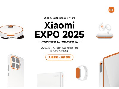 小米技術日本株式会社(以下「シャオミジャパン」、本社:東京都港区)は、9月26日(金)に発表予定の新製品をいち早く体験できる新製品発表イベント「Xiaomi EXPO 2025 ~いつもが変わ...